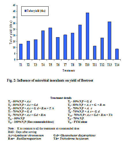 Figure 2: Influence of microbial inoculants on yield of Beetroot. Click here to View figure |