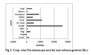 Figure 3: Crop-wise Net returns per acre for non-tobacco growers (Rs.). |