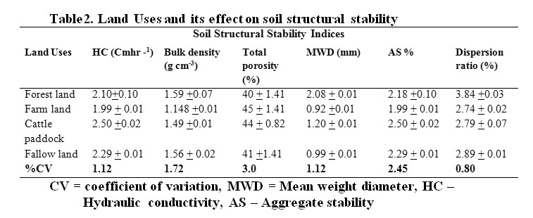 Table 2: Land Uses and its effect on soil structural stability. |