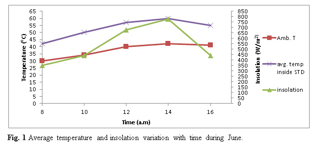 Figure 1a: Average temperature and insolation variation with time during June. Click here to View figure |