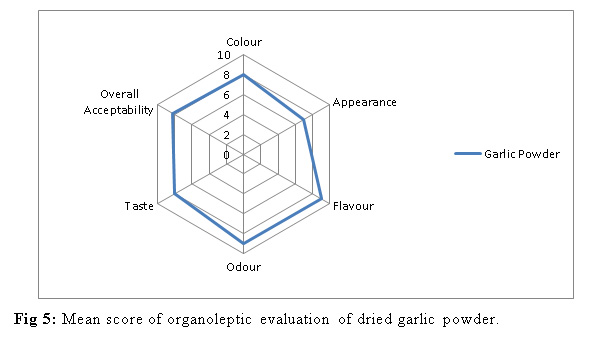 Figure 5: Mean score of organoleptic evaluation of dried garlic powder. Click here to View figure |