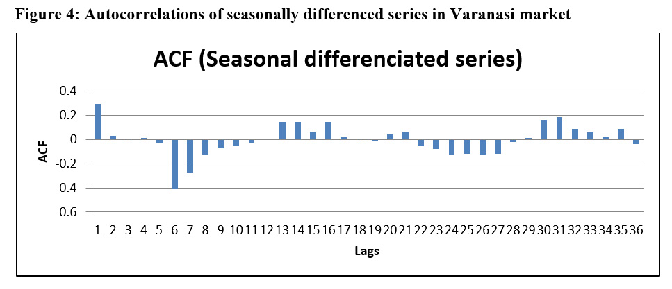 Figure 4: Autocorrelations of seasonally differenced series in Varanasi market. |
