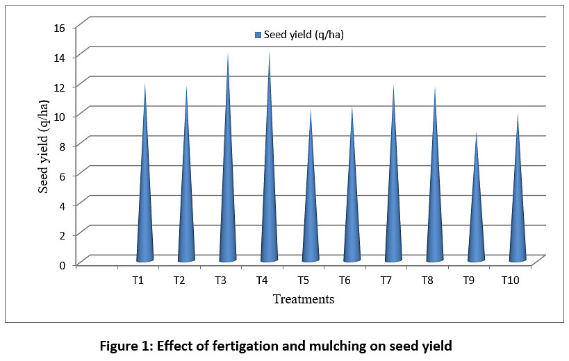 Figure 1: Effect of fertigation and mulching on seed yield. Click here to View Figure |