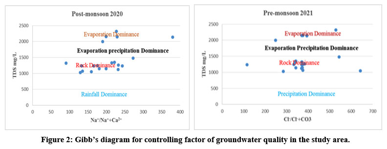 Figure 2: Gibb’s diagram for controlling factor of groundwater quality in the study area. |