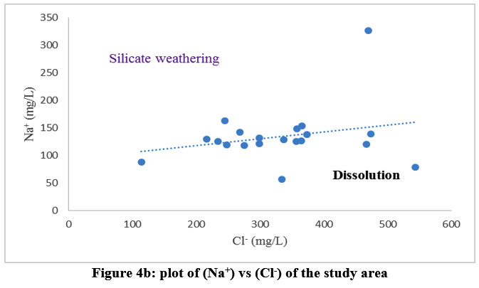 Figure 4b: plot of (Na+) vs (Cl–) of the study area |