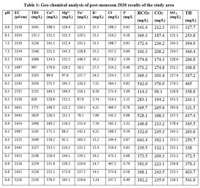 Table 1: Geo-chemical analysis of post-monsoon 2020 results of the study area |