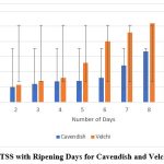 Figure 3: TSS with Ripening Days for Cavendish and Velchi Banana |