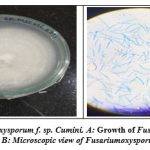Pure culture of Fusarium oxysporum f. sp. cumini was acquired from the Plant pathology department of Agriculture University, Junagadh (Figure1).