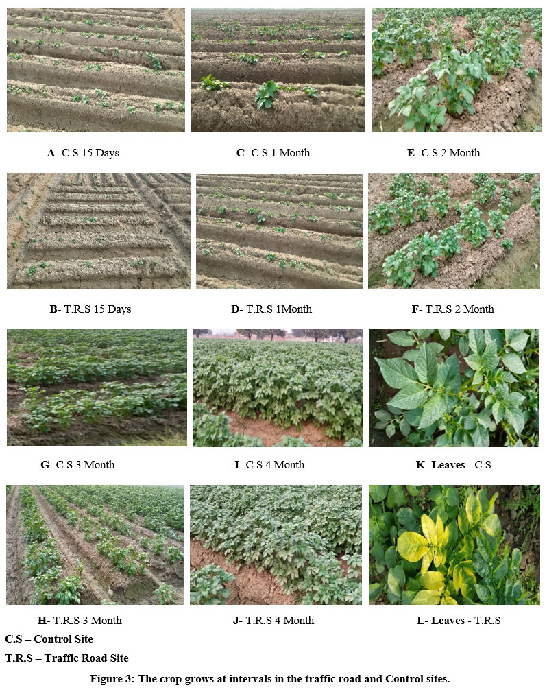 A traffic road and non-traffic road sites are chosen for crop sampling near Morepur on NH-235; the control site is 1000 meters away. In this experiment, Solanum tuberosum L., a crop plant, is utilized. The crop sample had been verified and taxonomically recognized by the Department of Botany at the C.C.S. University in Meerut, Uttar Pradesh, India; Bot/PB/261 is the number of the authenticated and taxonomically identified sample.