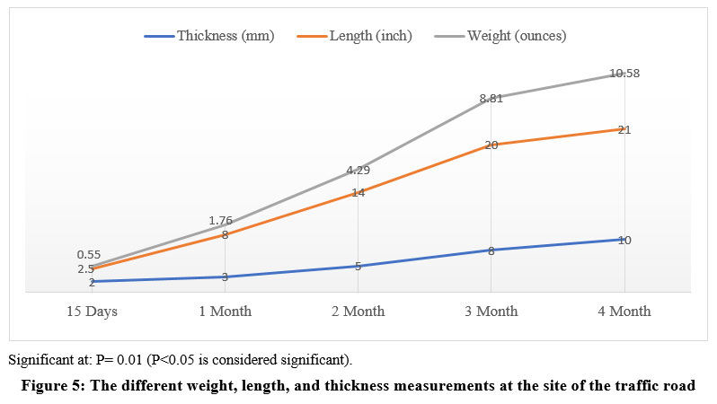 Figure 5: The different weight, length, and thickness measurements at the site of the traffic road |