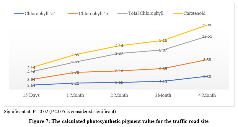 Figure 7: The calculated photosynthetic pigment value for the traffic road site |