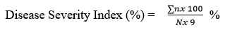 Then, the percentage disease severity was calculated using the following formula