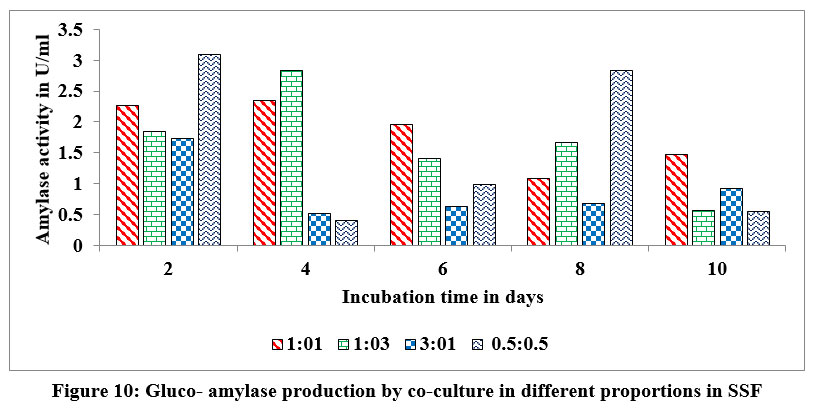 Figure 10: Gluco- amylase production by co-culture in different proportions in SSF. |