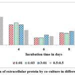 Figure 11: Production of extracellular protein by co-culture in different proportions in SSF. |