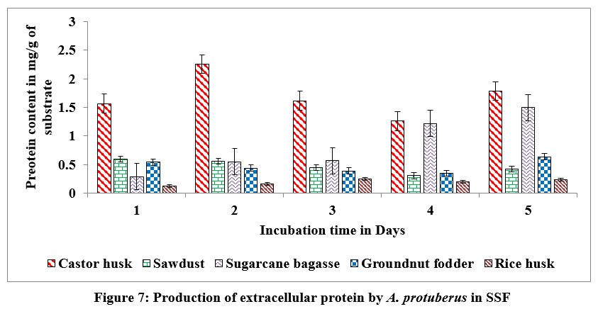 Figure 7: Production of extracellular protein by A. protuberus in SSF. |