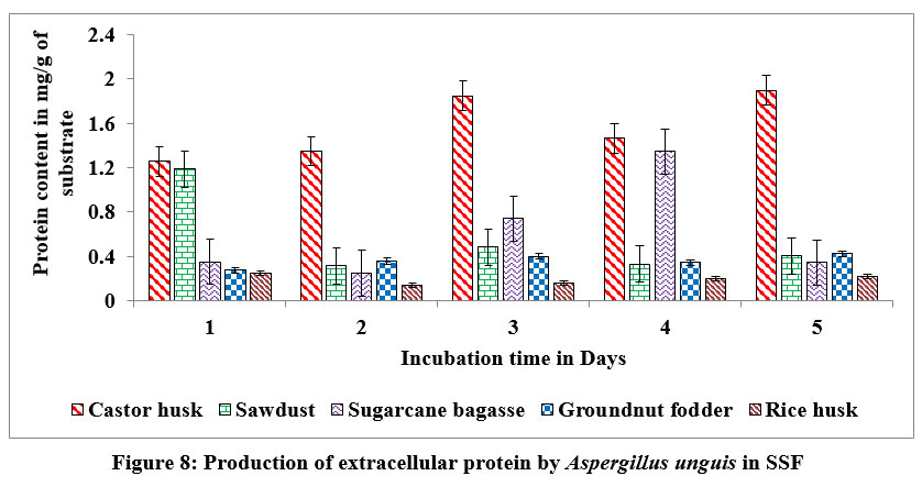 Figure 8: Production of extracellular protein by Aspergillus unguis in SSF. |