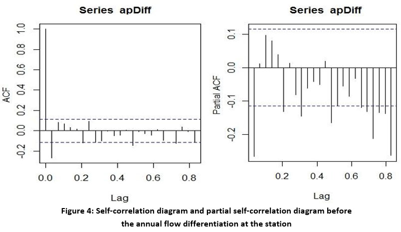 Figure 4: Self-correlation diagram and partial self-correlation diagram before the annual flow differentiation at the station. |