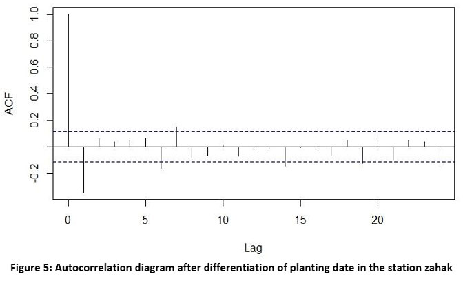 Figure 5: Autocorrelation diagram after differentiation of planting date in the station zahak |