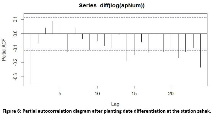 Figure 6: Partial autocorrelation diagram after planting date differentiation at the station zahak. |