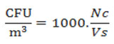 Where Nc is the number of colonies and Vs is the sampled volume in litres.