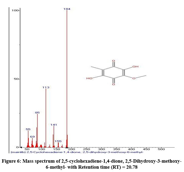 20.78 2,5-cyclohexadiene-1,4-dione, 2,5-Dihydroxy-3-methoxy-6-methyl- C8H8O5 184 9.29 Unknown