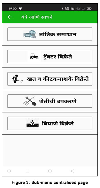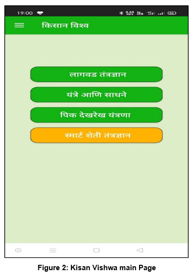 The main page of the KisanVishwa application, showcased in Figure 2, is thoughtfully designed in Marathi, the regional language of Maharashtra. This strategic localization enhances comprehension and usability for users who prefer or are more comfortable communicating in Marathi.