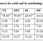 Table 2B: Analysis of variance (mean sum of squares) for yield and its attributing traits under wetland conditions during summer. |