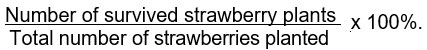 Growth and yield parameters such as percentage survival (%), number of runners, number of leaves, days to flowering, number of marketable fruits (g) and non-marketable fruits (g) produced were counted while plant height (cm) were measured using a measuring tape in centimeter reading at 90 days after transplanting.