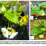 For mulching application, plastic mulch with 4 feet width and 30 microns thickness and 5 kg of rice hulls/plot were applied and used before planting the strawberry seedlings. Sample plants were carefully planted at 10 x 10 cm distance of planting in previously prepared plots.
