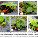 On the other hand, the application of mulching has strong effects on the quality, productivity and harvesting that primarily influenced soil moisture conservation, regulates availability of nutrients in the soil, microbial activity, enhanced soil fertility, inhibits the growth of weeds and reduction of dirty and diseased strawberries34. Productivity and yield of strawberry were affected by increasing of 68 to 33% when subjected to mulching condition4.