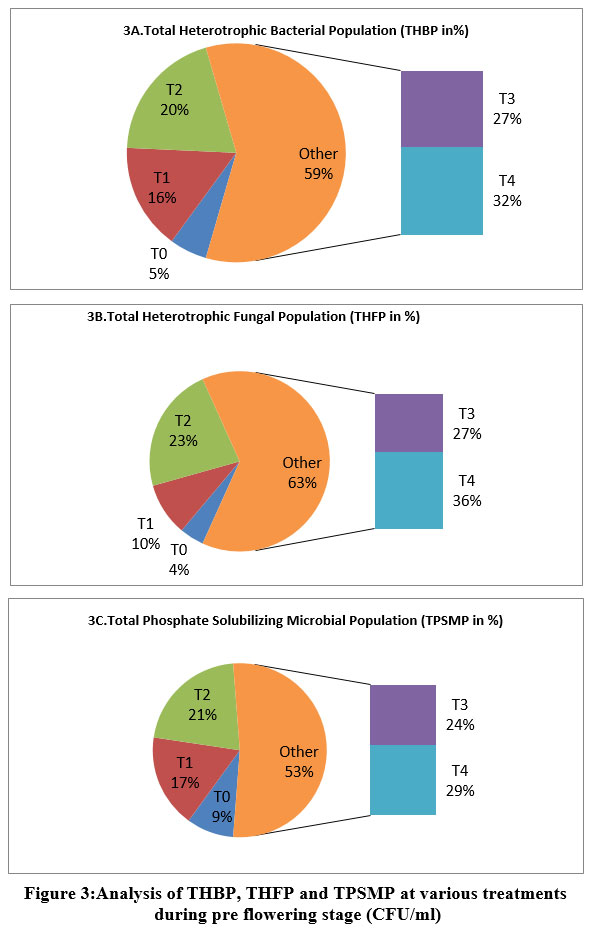 The distribution of Rhizobium to increase the nitrogen requirement of growing legumes was established in the experiment of inoculating the leguminous plants with VA mycorrhizal fungi and effective strains of Rhizobium and phosphate solubilizing organisms separately and in dual form. This increased nodulation, nitrogen fixation, and accumulation.45. Like that, in this observation also, the plots enriched with R.phaseous and PSO either in a mixed form or in separate form gave comparatively good results than control. A substantial population of this agriculturally significant Rhizobium species was found when it was cultured using organic manures.