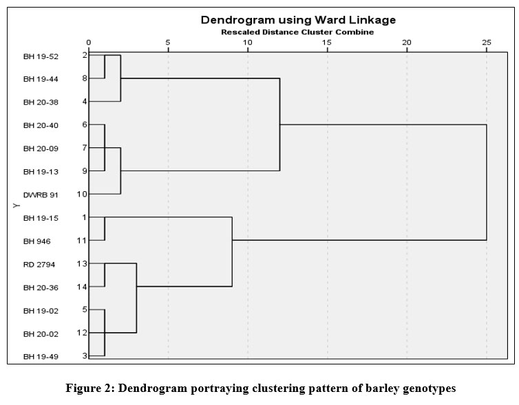 Figure 2: Dendrogram portraying clustering pattern of barley genotypes |