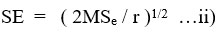 Where, SE is standard error of the difference of the treatment means to be compared, and  is equal to: