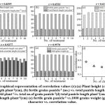 2. Total panicle length (cm) plant-1(cm) vs. fertile grains  panicle-1 (no.) 0.6533 Positively correlated and and significant at 1%