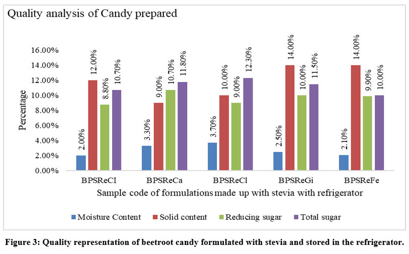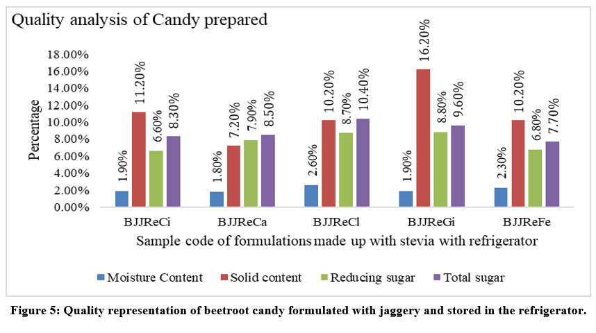 Figure 5: Quality representation of beetroot candy formulated with jaggery and stored in the refrigerator. |