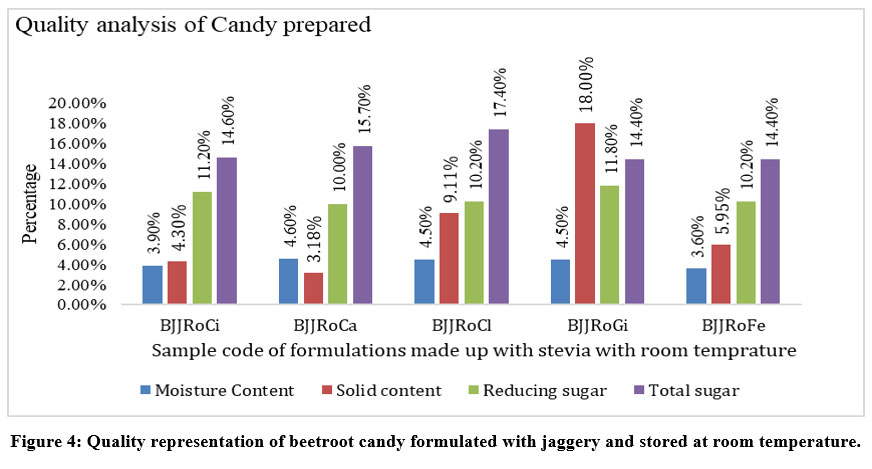 Figure 4: Quality representation of beetroot candy formulated with jaggery and stored at room temperature. |