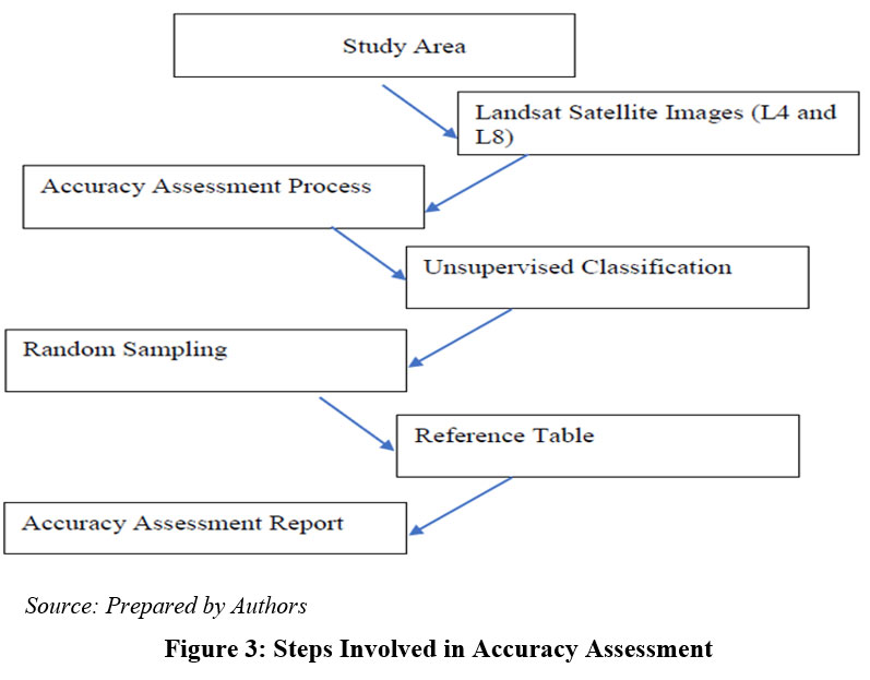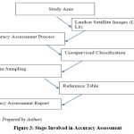 Evaluation of accuracy is a crucial step in the processing of remote sensing data.19 It ensures factual data to the users. The complete accuracy of the classified image relates to actual land cover conditions.20 Accuracy assessment of LULC is carried out for both regimes using Earth Resources Data Analysis System. The Fig. 3 shows steps involved accuracy assessment using ERDAS Imagine 2013.