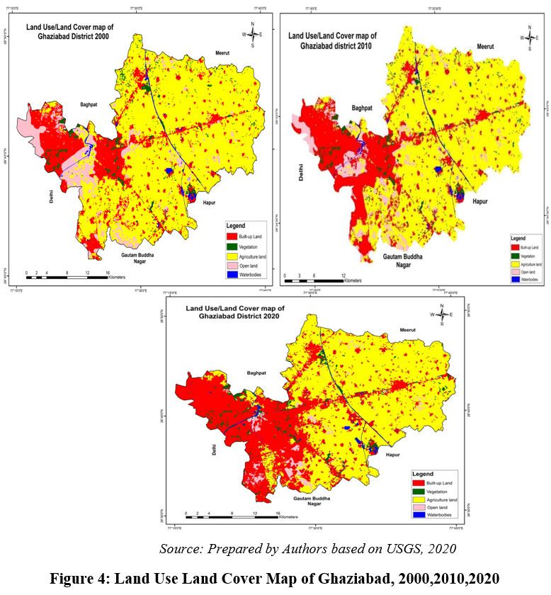 Figure 4: Land Use Land Cover Map of Ghaziabad, 2000,2010,2020 |