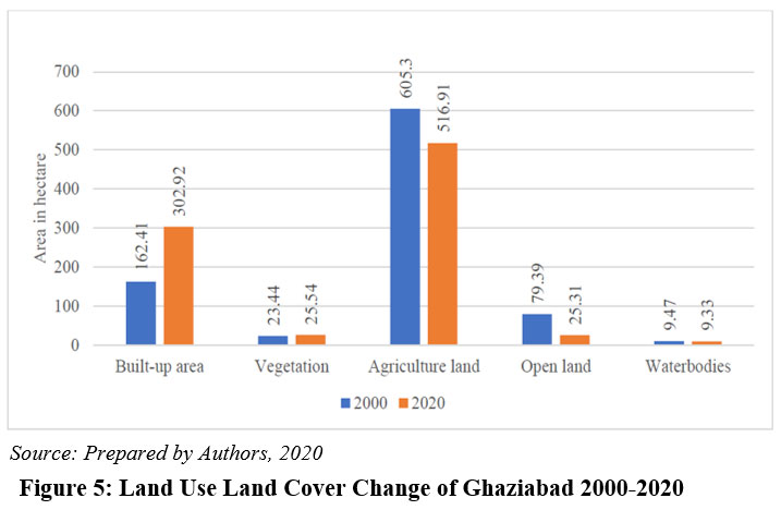 Figure 5: Land Use Land Cover Change of Ghaziabad 2000-2020 |