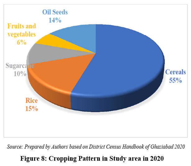 The cropping pattern of different crops in the Ghaziabad area is dependent not only on physical and agro-climatic conditions, but also on socio- economic and infrastructural facilities. For the analysis of the cropping pattern in the research area, public government records utilise the data of the area under different crops. To comprehend the modifications in agricultural practises, a detailed analysis of agricultural land use is done.