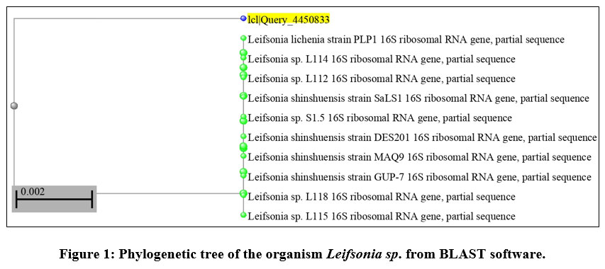 Figure 1: Phylogenetic tree of the organism Leifsonia sp. from BLAST software. |