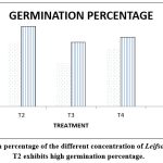 Figure 2: Germination percentage of the different concentration of Leifsonia sp. on Zea mays. T2 exhibits high germination percentage. |