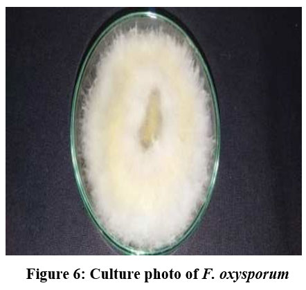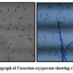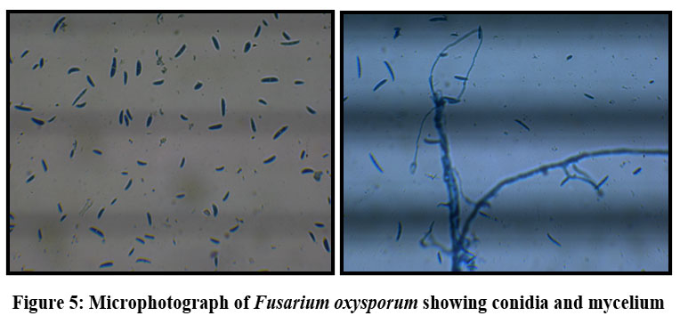 Figure 5: Microphotograph of Fusarium oxysporum showing conidia and mycelium |