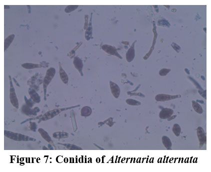Identification of the pathogen involved microscopic examination based on spore morphology and colony characteristics. Confirmation was sought through the Indian Type Culture Collection (ITCC), Division of Plant Pathology, IARI, New Delhi-110012.