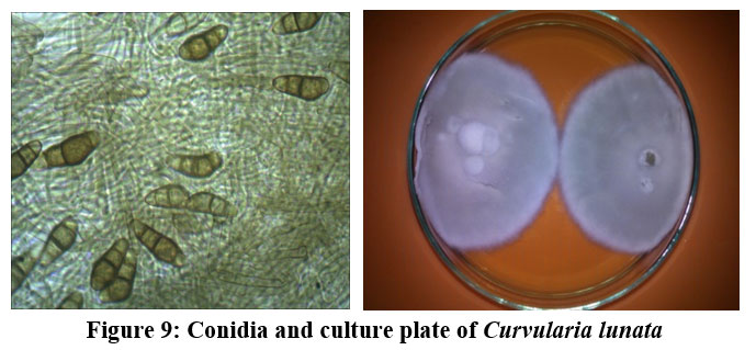 Figure 9: Conidia and culture plate of Curvularia lunata |