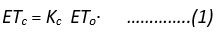 The CROPWAT-8.0 model was used to determine the Pomegranate plant’s water needs.8 The CROPWAT-8.0 aims to determine crop water demand and irrigation scheduling based on data input in the specified format.15 FAO recommendations served as the foundation for the CROPWAT-8.0 calculating processes 1.1 This makes it simple for the user to take into consideration a variety of soil, meteorological, and agricultural data while determining crop water requirements, irrigation plans, and supply. Evapotranspiration (ETo) was determined using the Penman-Monteith theory. The crop’s evapotranspiration can be calculated using the Penman-Monteith method, climatic data, air resistance factors, and crop resistance factors.13 Despite the lack of crop-specific data, Penman-Monteith models were used to determine the evapotranspiration (ETo). The coefficient of Crop (Kc) is the name given experimentally to the calculated ratio of ETc•ETo-1. It was also used to calculate ETc from ETo. The values of water requirement of pomegranate plantation spaced at 3.5*2.5 m vary with Bahar (seasons) such as Ambe Bahar (January to July), Hasta Bahar (October to April), and Mrig Bahar (June to December). The crop coefficient values climbed from 0.22 to 1.10 over the time from the commencement of new leaves to crop growth, and during the maturity stage, the Kc values were close to 1.2. Due to the drop of leaf, water sprouts, breakdown of the foliage, and harvesting of fruit, the Kc decreased from 1.14 to 0.65 at harvesting.15 Stages of Crop are taken as Ambe Bahar (January to August) for the entire three years. The evapotranspiration is determined with Equation 1.16