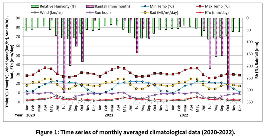 Figure 1: Time series of monthly averaged climatological data (2020-2022) |