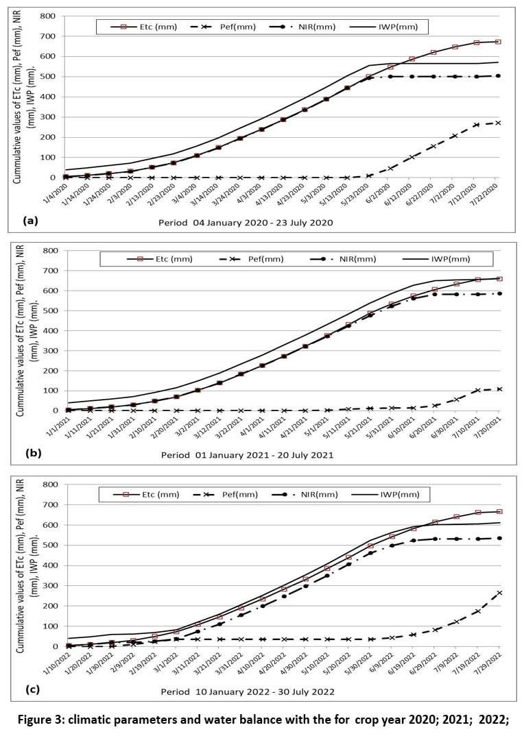 Figure 3: climatic parameters and water balance with the for crop year 2020; 2021; 2022; |