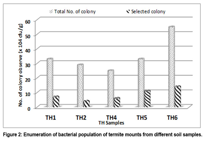 Figure 2: Enumeration of bacterial population of termite mounts from different soil samples.