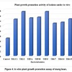 The in vitro plant growth promotion test was performed using mung bean (Vigna radiata L.) seeds obtained from the local market of Nirjuli, Arunachal Pradesh, India. The mung beans were first washed in flowing tap water, rinsed with distilled water, and left to be soaked in distilled water overnight. The seeds that had been soaked overnight were subjected to surface sterilization using a 2% sodium hypochlorite solution for five minutes. Following the sterilization treatment, the seeds were rinsed off with sterilized distilled water 2 to 3 times. The bacterial inoculum is prepared by culturing the isolates in LB broth in a shaker incubator at 170 rpm and 28°C for 24 hours. The sterilized seeds were immersed in the culture broth for 30 minutes. After treatment, the seeds were planted on agar plates, while control plates contained untreated seeds soaked in water and incubated at 28±2°C. Post-incubation, the shoot and root lengths were measured, recording both in centimetres from the root tip to the top of the stem.25